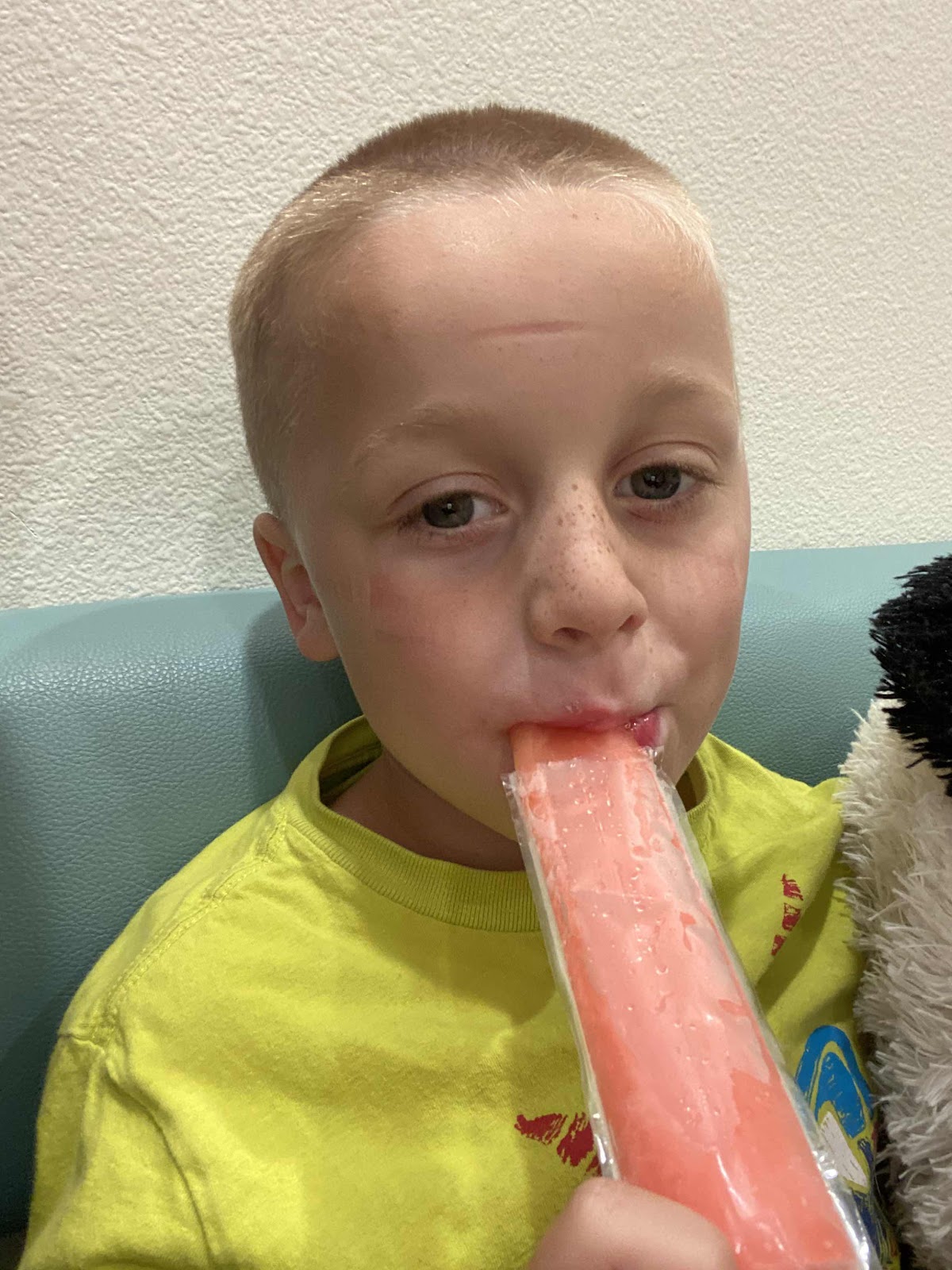 He had a bit of a rough afternoon. After the numbing wore off he kept crying and begging for the caps to come off. He was in pain and was refusing to take any medicine. I told him I’d get him some ice cream and maybe after that he’d take it. It worked. After he took meds we snuggled most of the afternoon. He doesn’t do that much so I ate it up!
